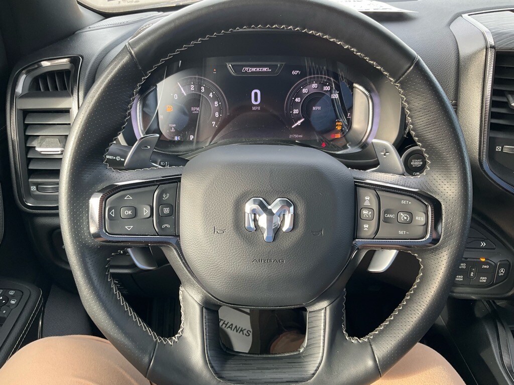 LOCAL TRADE, ONE OWNER, CLEAN CARFAX, REBEL X PACKAGE, 12" TOUCH SCREEN, NAV, HEATED/COOLED SEATS, HEATED STEERING WHEEL, PANORAMIC SUNROOF, PASSENGER SCEEEN, POWER UP/DOWN TAILGATE, HARMON KARDON SOUND SYSTEM, BEDLINER, REMOTE START AND MORE.